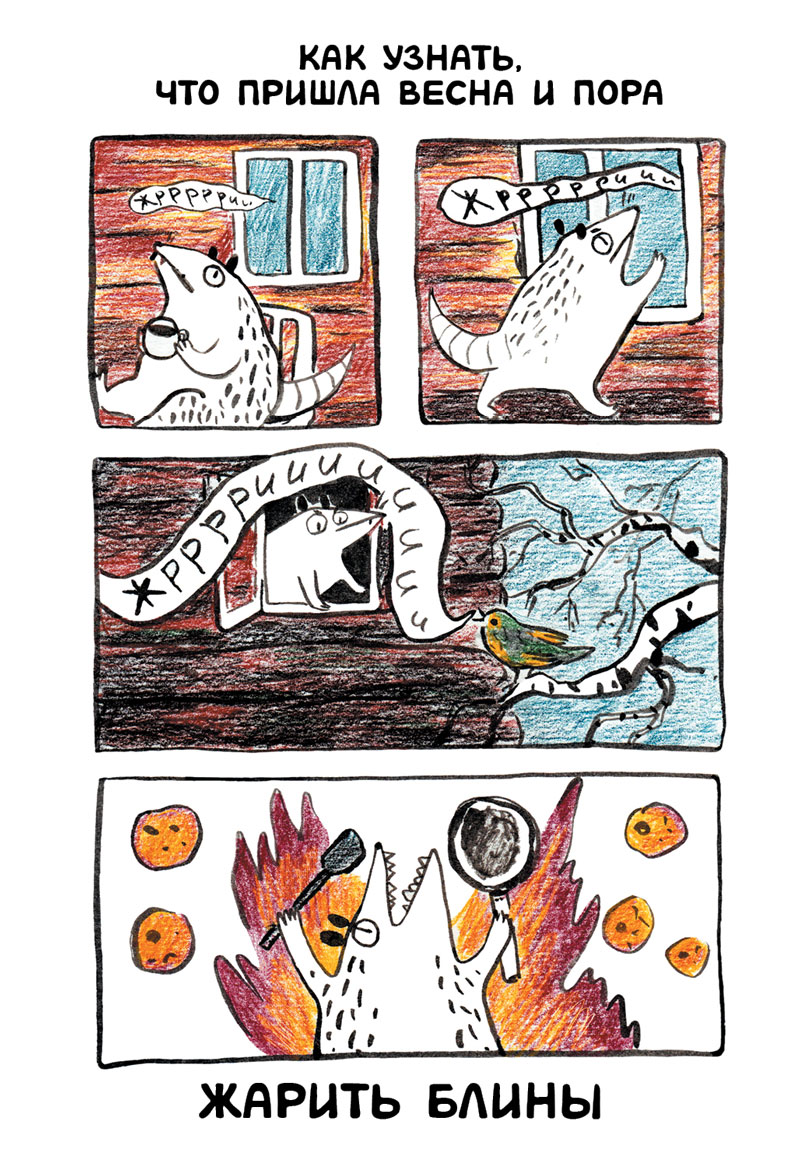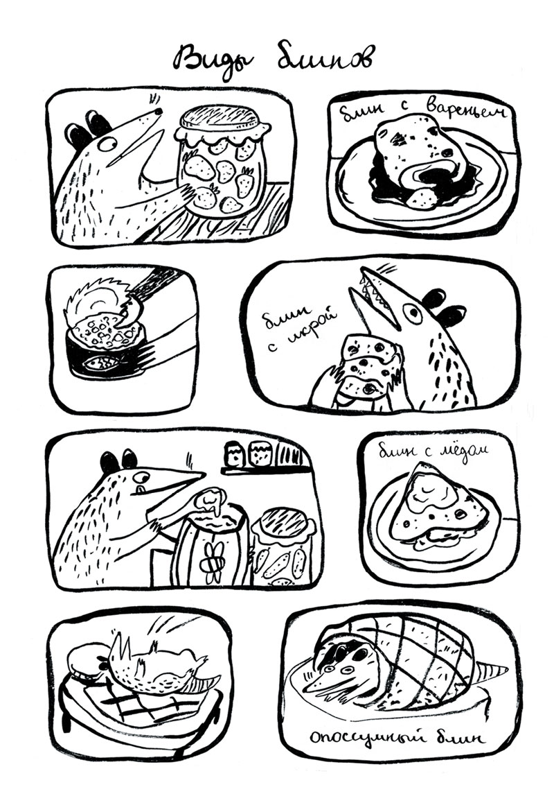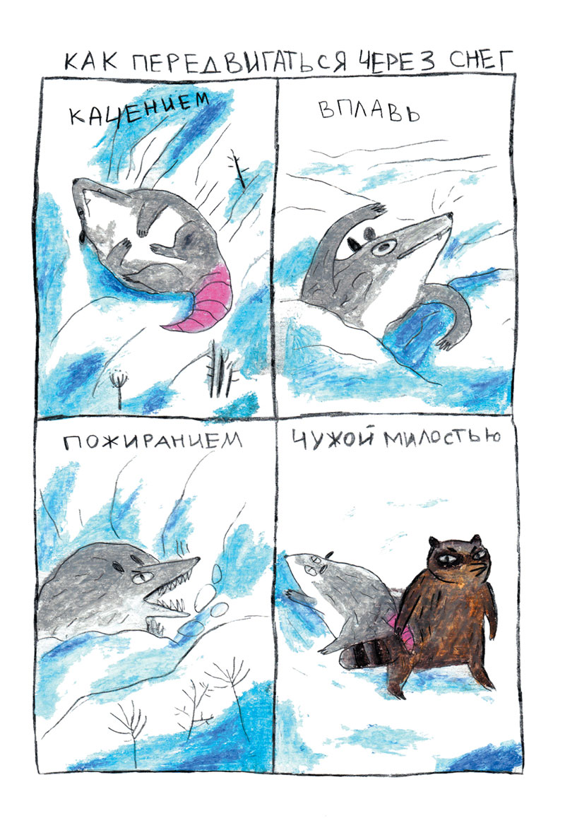 У живущей в лесу Опоссумицы каждый день много дел: съесть Луну, подраться с грачом и испечь гору блинов. В книжке собраны истории про её маленькие приключения, полные воплей и жизненных ситуаций: любимые классические сюжеты и около двадцати страниц совершенно новых.