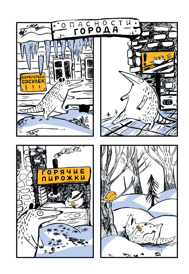 Полюбившиеся почтеннейшей онлайн-публике комиксы про опоссума художницы Яны Вятелень впервые находят своё воплощение на бумаге.